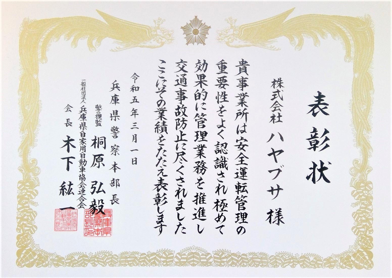 兵庫県自家用自動車協会連合会より『優良事業所』として