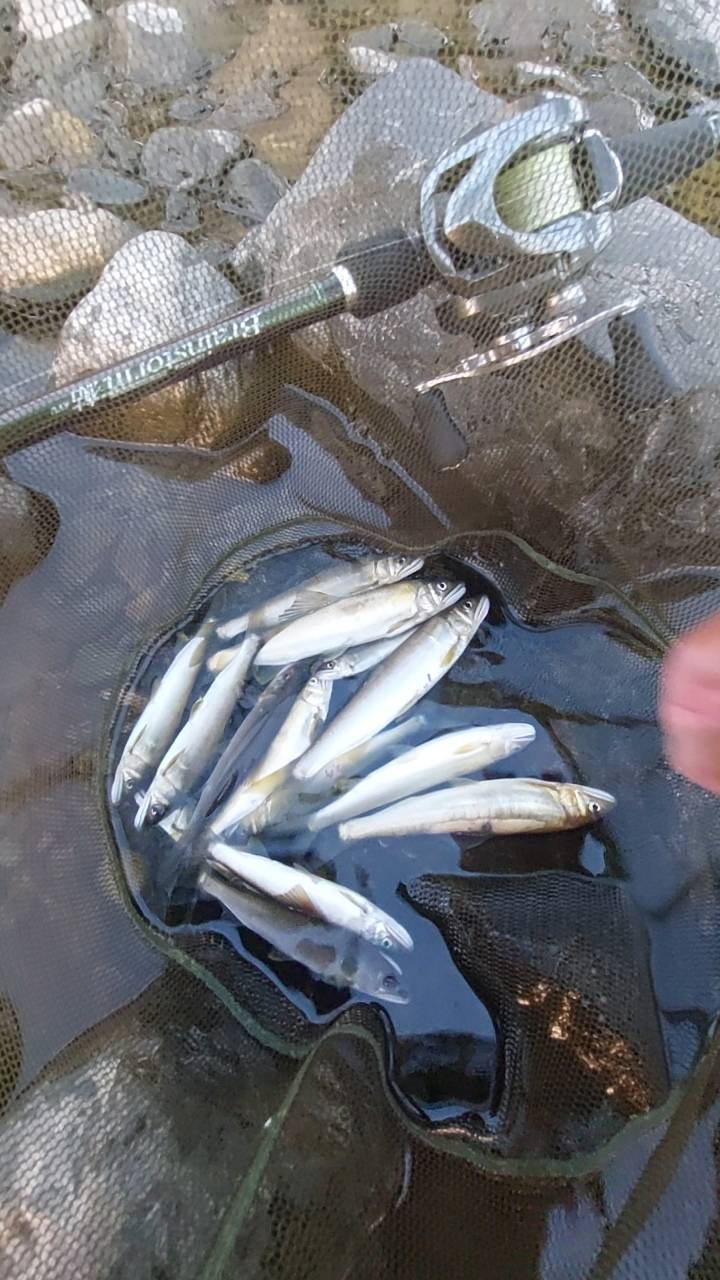夏になり、高水温の為、引き舟の鮎は7割がご臨終していましたので、美味しくいただくため、即クーラーBOXへ入れた方がいかもしれません。釣った鮎は、美味しくいただきますが、定番の塩焼きと、私のおすすめは梅シソを開いた鮎で包んで、海苔を巻いて揚げた、梅シソ包み揚げです。ぜひお試しください☆