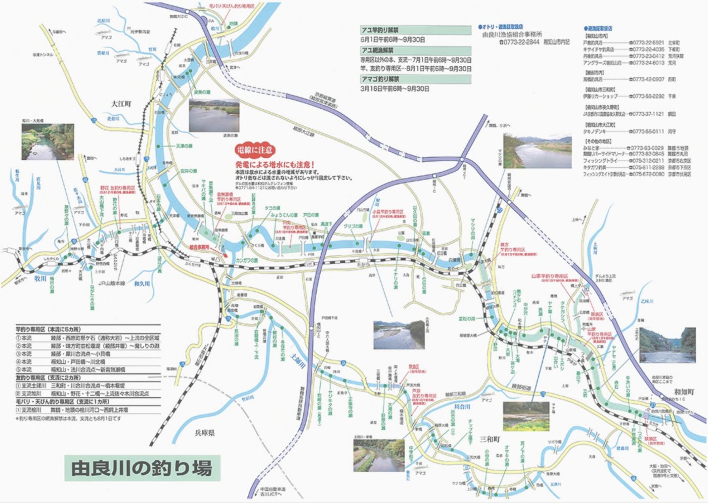 同河川は鮎放流もしていますが、殆どの鮎は海産の天然遡上です。由良川漁協さんでポイント地図も置かれていますので、釣禁止区域等の詳細は下記HPを確認ください。
