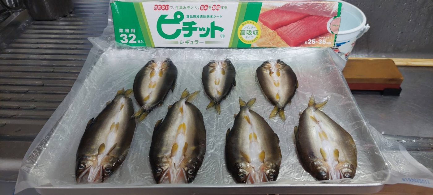 釣った鮎は初めて一夜干しにチャレンジです。美味しくできるのか?ピチットシートと真空パック機も届いたので、楽しみです。