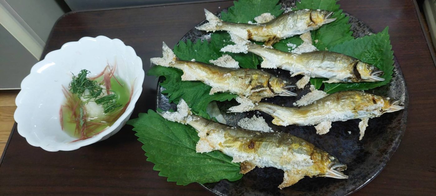 釣果アユ(最大20㎝を5匹)