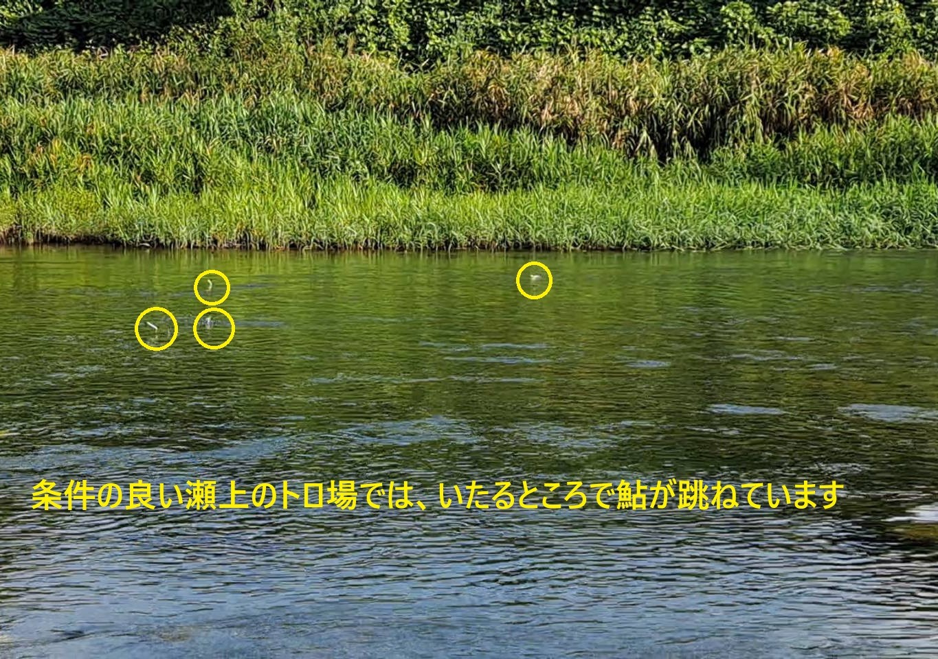 前日より水位は下がり、鮎のポジションが若干変わっていましたが、引き続き好反応でした。