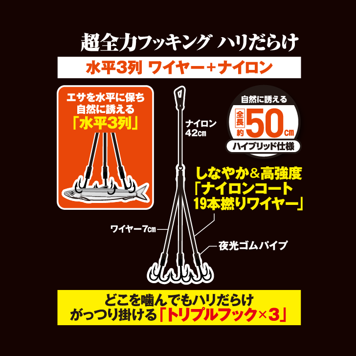 | サイズ | 鈎(号) | 幹糸 (号) | ハリス | JAN |