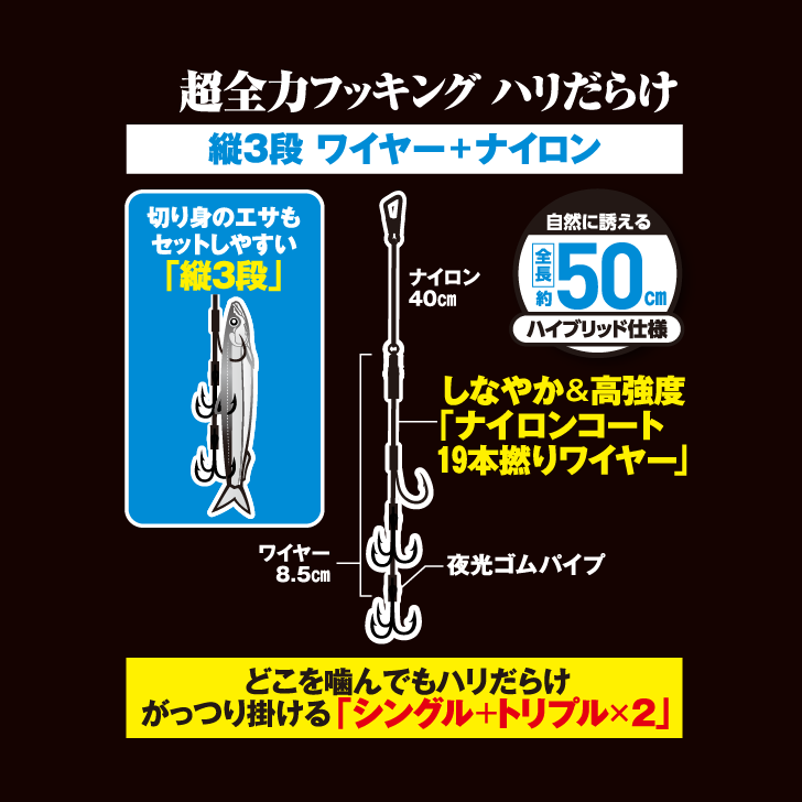 | サイズ | 鈎(号) | 鈎(号) | 幹糸 (号) | ハリス | JAN |